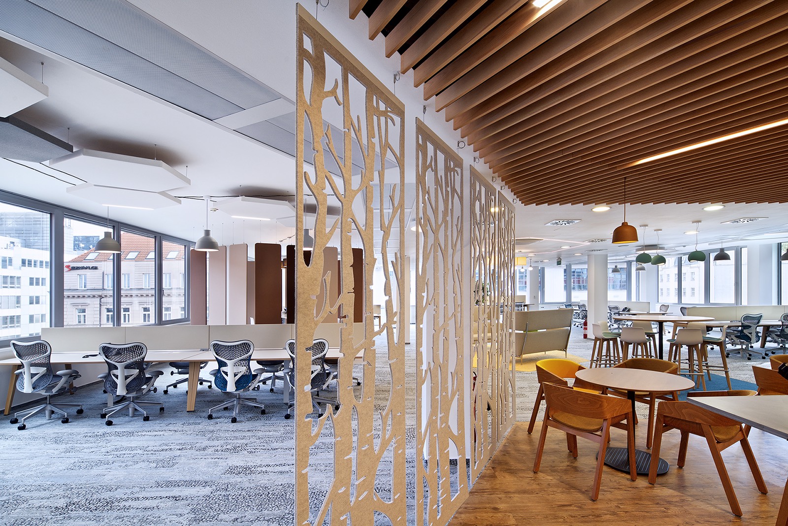 “The CEMEX Smichov Gate office project is the outcome of nearly 6 months of intensive collaboration during design and construction phases. The result is unparalleled as the design was tailored for a client who wasn’t afraid to question standard, typical office workplace environment. It allowed us to come up with an original concept of hexagonal shapes, implemented throughout the premises and used to create a diverse selection of areas to organize the space and offer unique comfort for various work styles. The leitmotif of the CEMEX office is the flexibility of the space and high level technological equipment,” says Lucie Mala from Tétris