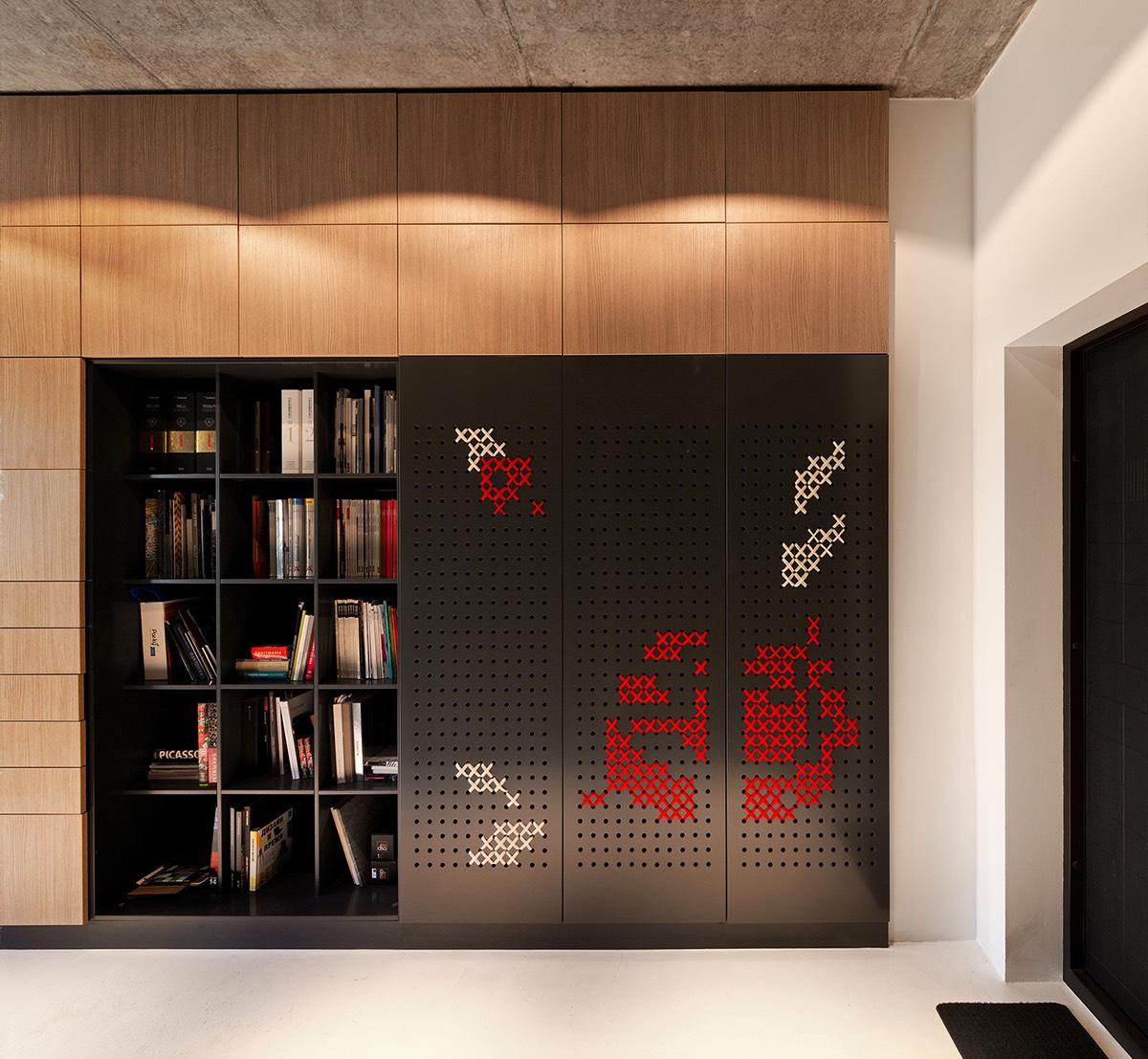 “Office is a place where you spend 1/3 of your life. It is important to make it not only functional, but also pleasing to your eyes. In our case – design studio Yakusha Design, that is known for minimalist style in the interior works and artisan eco-collection of furniture FAINA (www.faina.design) the solution was obvious – lots of day light, white and grey colours and natural materials. Here we not just work on architectural projects and design ideas, but also enjoy the time we spend together. Victoriya Yakushs, head of the studio Yakusha Design, worked on this space in 2016-2017. Project was inspired by Ukrainian culture and philosophy of eco-style. The basis of the interior is the principle of minimalism. The ceiling here is made of concrete, and the walls are made of felt and metal. Almost all of the furniture for the office is made on our own production and present FAINA collection. Here you can find our modular sofa FAKTURA, designed pillows TURBOTA and set of vases PAPIR. The walls are also decorated with huge symbols of traditional Ukrainian embroidery,” says Yakusha Design