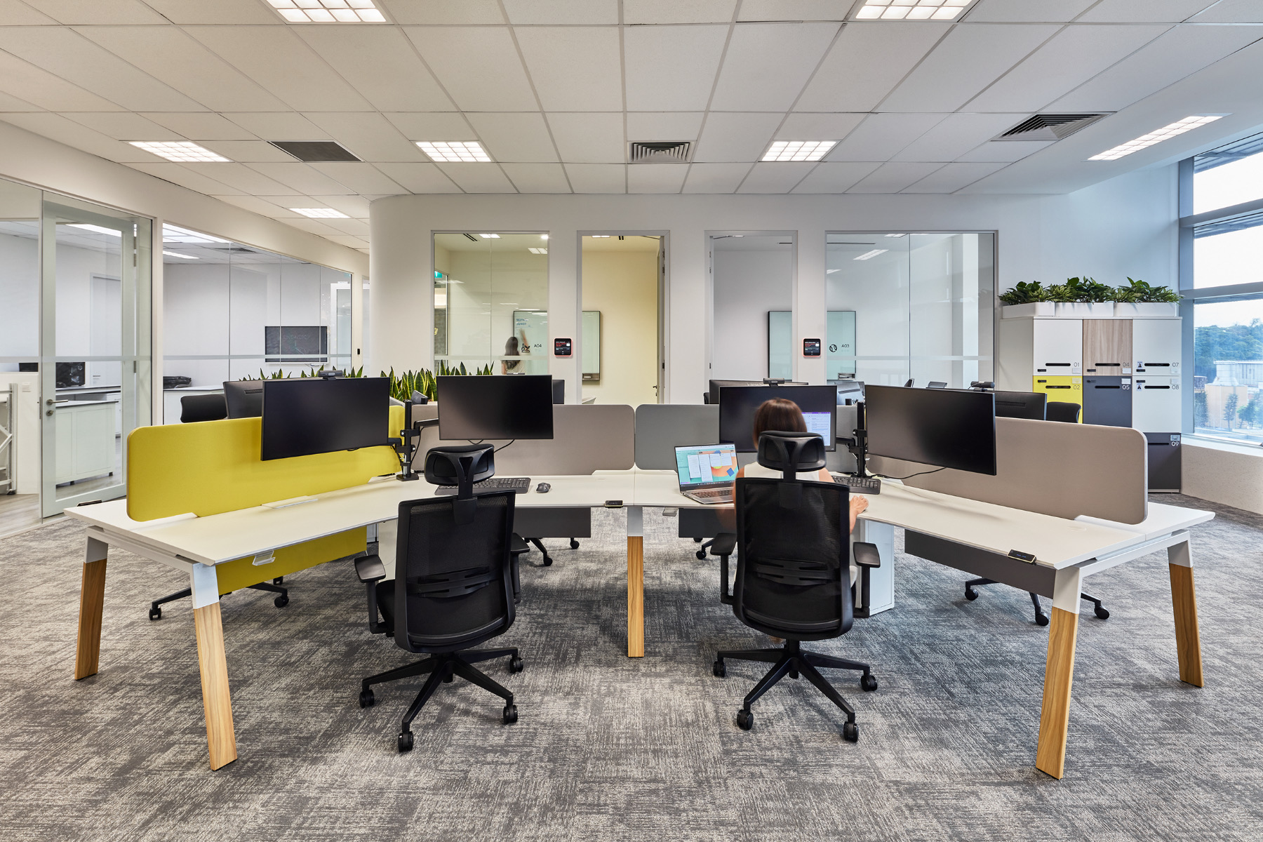 Natural light is maximised and prioritised for focus work desks, while the laboratory, which has no access to windows, has Singapore’s first installation in an office setting of Nature Connect, a smart light that follows circadian rhythms. Training and meeting rooms also employ the latest glare-free lighting to improve comfort for users.”