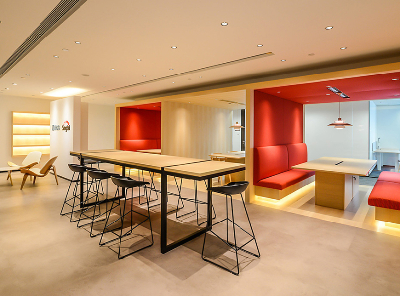 “Wallem is a shipping company founded in Shanghai in 1925 by a Norwegian family. This maritime theme & period became our design theme throughout the space, along with a series of shipping models we could display. The client needed to move as Swire was demolishing the bonded warehouse, Warwick House, where the client was based at a good rental rate; in order to make way for new buildings. The new space was in a class A building so needed to be substantially smaller than the converted warehouse space. This meant getting the staff involvement in selecting a suitable plan, workstation design we developed, & overall design. This Change Management was implemented through site visits, town halls, & mock ups,” says Circa ia