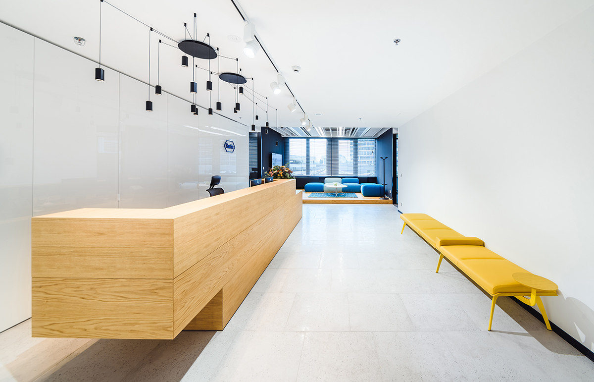 “Our main task defined by clients was to design a modern, highly-equipped open space office, based on Roche’s corporate rules, but with a strong local design touch. All working areas are situated strictly around a facade, because of accurate portion of sunshine, which is highly important as a natural source of light and also with purpose to eliminate the volume of electrical power consumption. In the central position of the office space there are meeting rooms with different sizes and all kind of contemporary equipment. There is also a social & cafe area, used as a multifunctional space. The interior also consists of reception desk connected to waiting and meeting area and separated chill out zones,” says at26