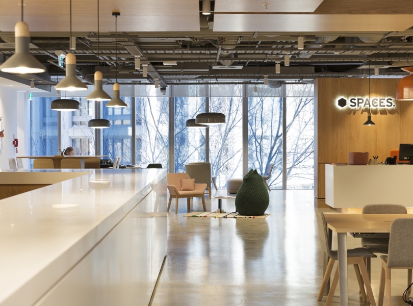 The bespoke track allows for spaces to be reconfigured to suit individual working, collaborative meetings and full office events and exhibitions. A soft muted palette of light colours accentuates the bright open space, whilst extensive use of greenery brings a sense of calmness and wellbeing into the workspace,” says HUT.