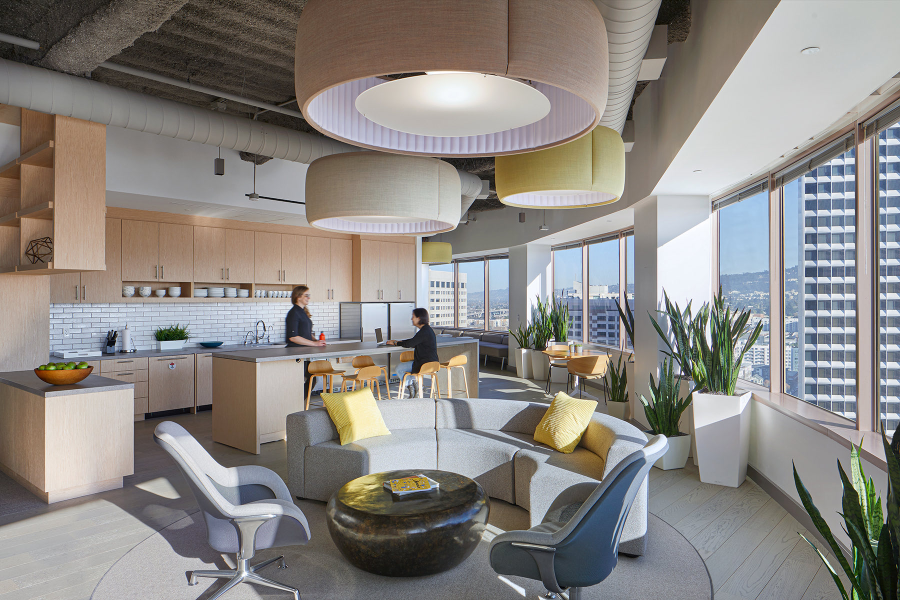 Warm, inviting materials that evoke nearby landscapes give the space its character. Perimeter meeting and office spaces, supporting a range of private and collaborative work, embody themes drawn from California’s natural environment. The spaces are anchored by a 1,200 square-foot communal gathering hub, bracketed by an open kitchen and the wide curve of exterior windows, that supports the Foundation’s culture of engagement and equity,” says TEF Design.
